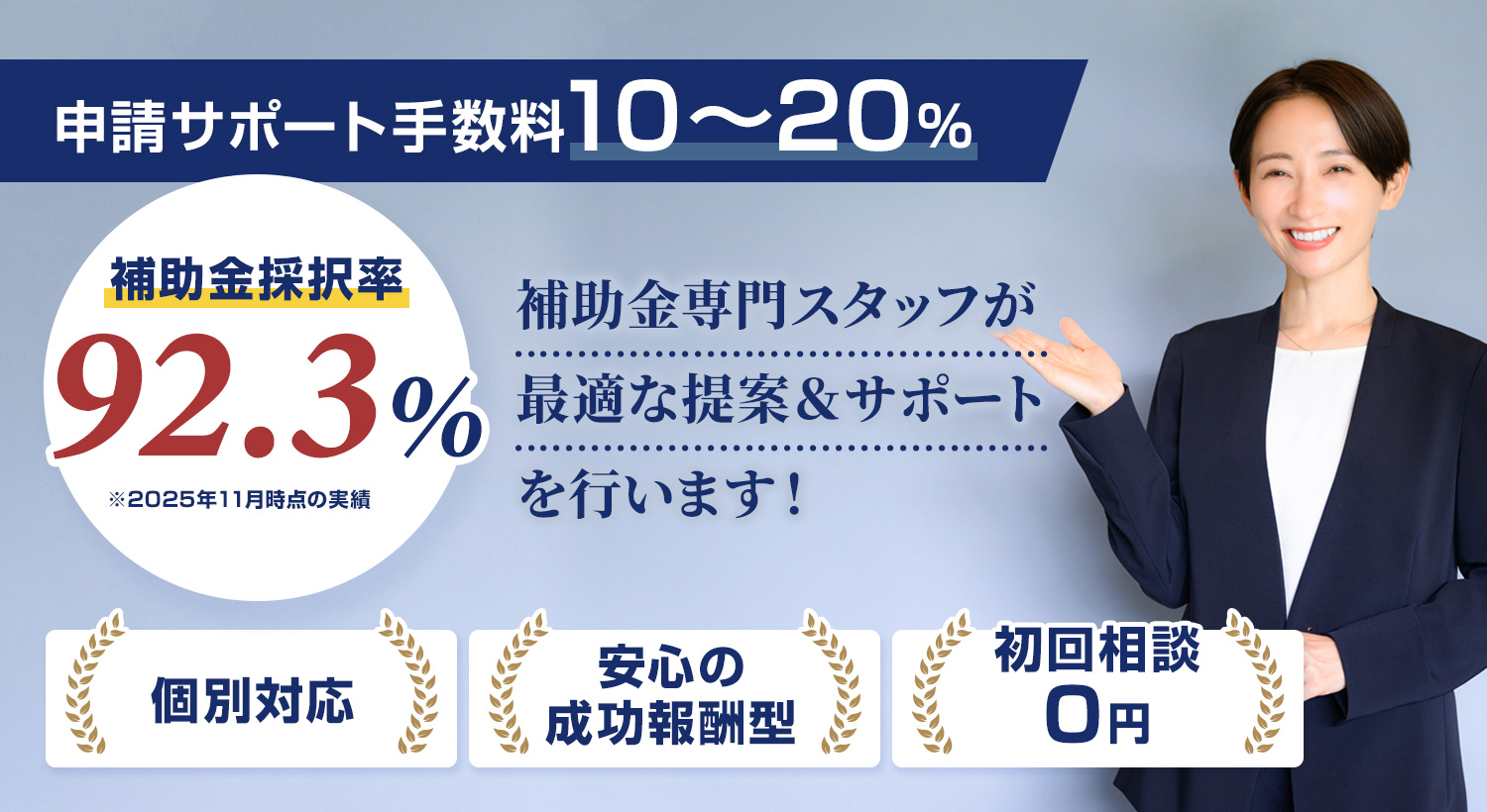 申請サポートは成功報酬制で費用の心配なく依頼可能。
